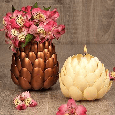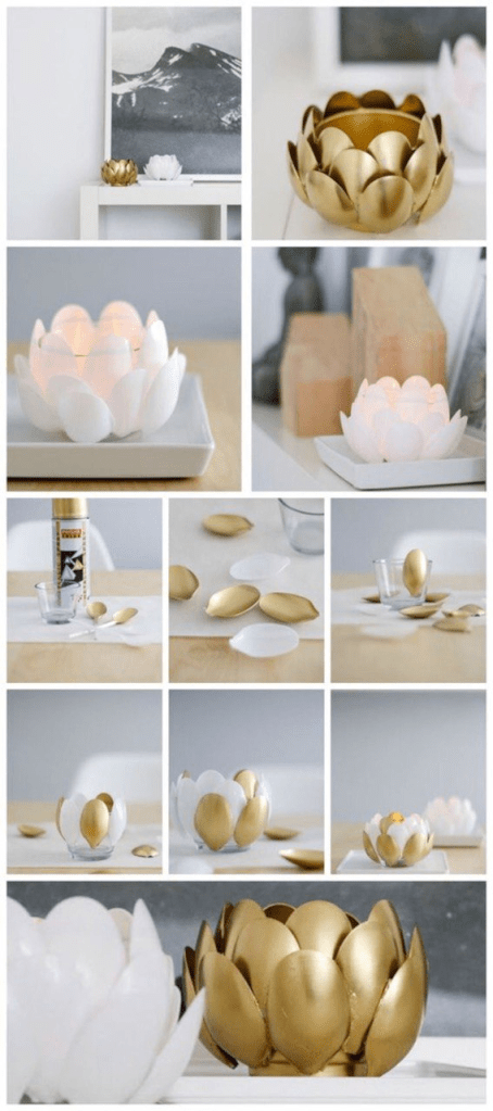 فكرة رائعة ولكن يجب التنويه هنا ان استعمال الملاعق البلاستيكية لعمل حامل شموع من الممكن أن يكون خطرًا وذلك لأن النار تذيب البلاستيك فلذلك ننصحكم بتجربة إناء الزهور واضافة لمسة رائعة للمكان